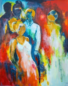 2020Het galabal Heerlijk feest vieren en dansen in onze mooie kleding. Een geabstraheerd werk in prachtig, heldere kleuren.